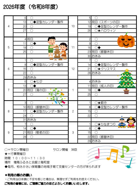 季節ごとに、ひなまつり、七夕、ハロウィン、クリスマスなどを行っており、保健師にも不定期に来てもらっています。